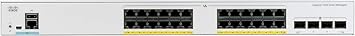 Cisco Catalyst 1000-24P-4X-L Network Switch, 24 Gigabit Ethernet PoE+ Ports, 195W PoE Budget, 4 10G SFP+ Uplink Ports, Fanless Operation, Enhanced Limited (C1000-24P-4X-L)