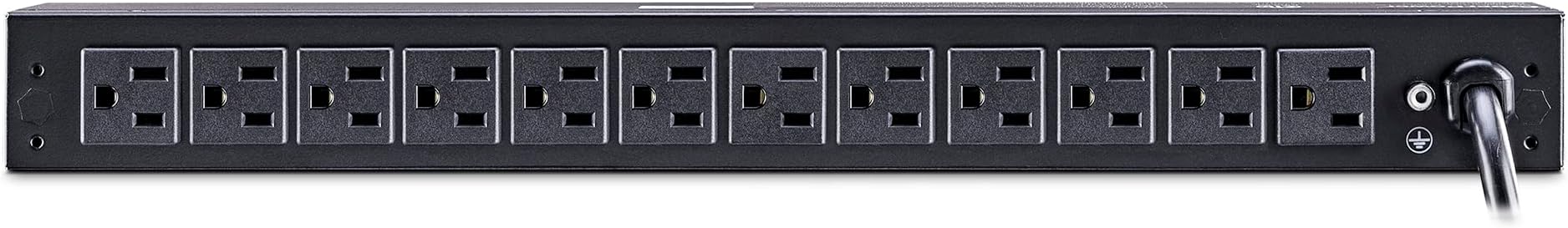 The CyberPower 14-outlet (2 Front and 12 Rear) rack mount metered power distribution unit (PDU15M2F12R) provides 120V 15A output. It distributes power to 14 NEMA 5-15R receptacles from a single NEMA 5-15P input, with unfiltered electrical pass-through. The current draw for connected equipment is displayed in amps on the front LCD for real-time load monitoring. Designed for datacenters and other electrically demanding applications, this unit has a rugged, industrial-grade metal housing and a 15-foot AC power cord. It can be mounted either horizontally or vertically, includes a cord retention tray and is ETL/RoHS certified. A lifetime warranty ensures that this PDU is free of defects in design, assembly, material or workmanship.
