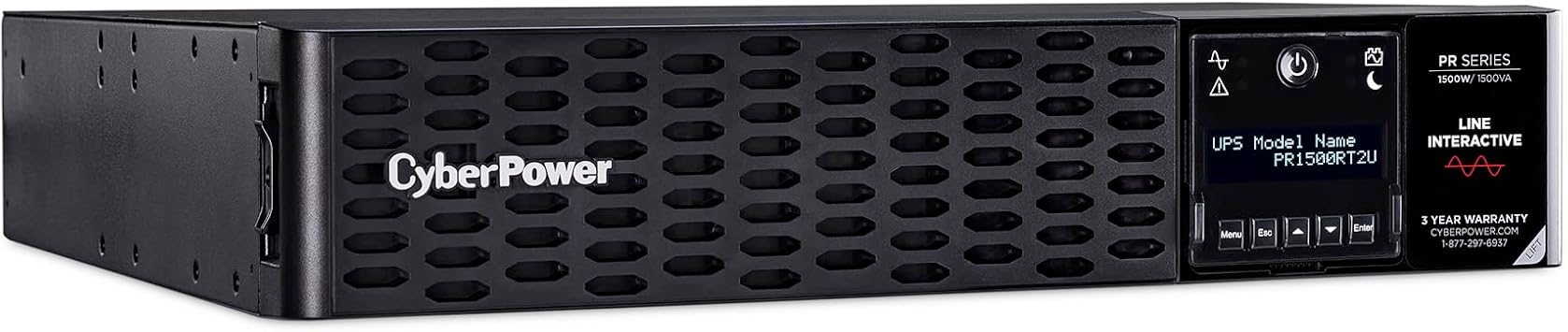 CyberPower PR1500RT2U Smart App Sinewave UPS System, 1500VA/1500W, 8 Outlets, 2U Rack/Tower, AVR