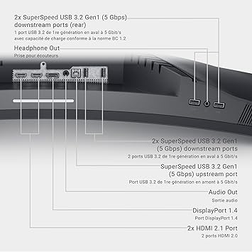 Dell Curved Gaming, 34 Inch Curved Monitor with 144Hz Refresh Rate, WQHD (3440 x 1440) Display, Black - S3422DWG