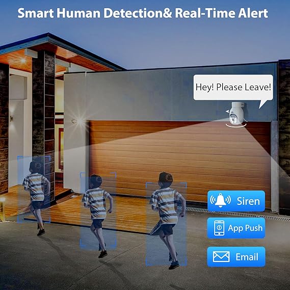 The camera can make an alarm sound and spotlight will work to scare theft away,and push notification