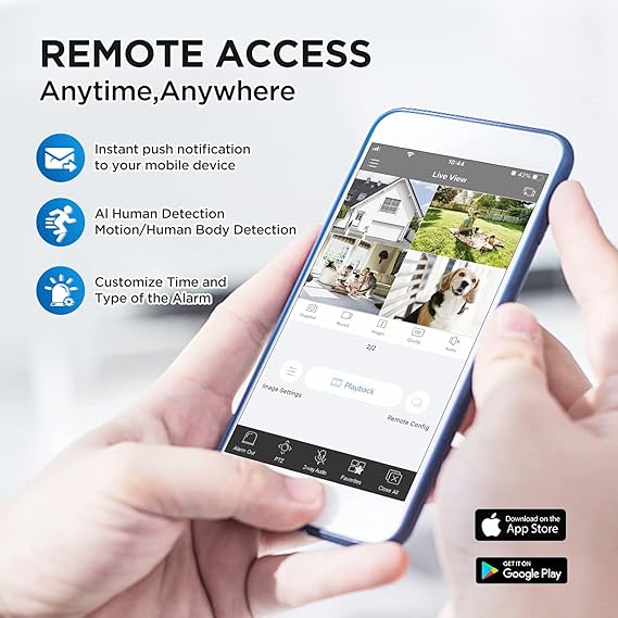 Easy live view & remote playback with free App on your smart phone and computer from anywhere at anytime, receive motion alerts when motion is detected.
