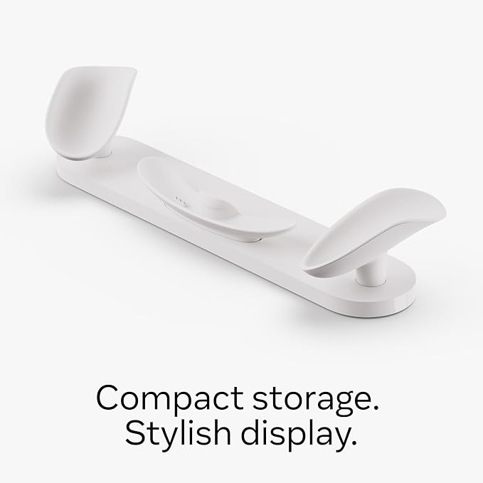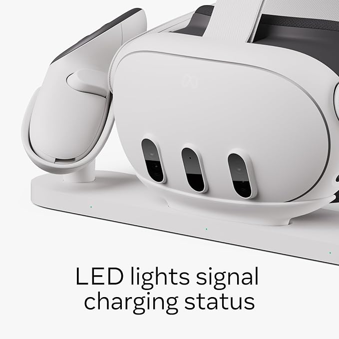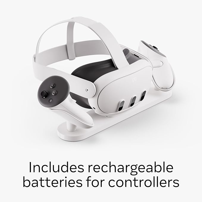 Always be ready to play and stay organized with this all-in-one wireless charging dock for the Meta Quest 3 headset and controllers. Includes high-capacity, lithium-ion rechargeable batteries for your controllers, so you can simply drop in your headset and controllers for wireless charging. While powering up your gear, the dock also displays your devices in style and within easy reach. This genuine Meta accessory ensures quality and a perfect fit and is compatible with our other accessories including Elite Strap, Elite Strap with Battery, and Active Straps (sold separately).