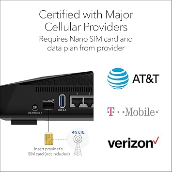 The Nighthawk 4 Stream LTE WiFi 6 Router (LAX20) is built with the latest generation WiFi 6 technology. Experience greater capacity and performance with 4-stream WiFi, up to 1.8Gbps of high-performance WiFi, and improved network capacity via OFDMA. The Nighthawk 4 Stream LTE WiFi 6 Router is a complete solution bundled with “Clearway Wireless” data plan (Data not included). For your household WiFi needs, enjoy a stronger connection with consistent, powerful signal strength from 4G LTE networks to your connected devices.