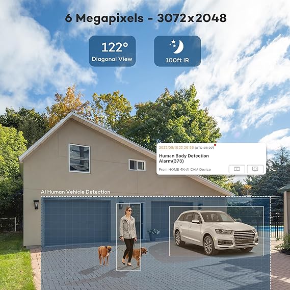 ONWOTE Wired 4K NVR Security Camera System PoE, Human Vehicle Detection Smart Color Night Vision, 8CH 4K 8MP NVR 2TB HDD, 4X 6MP Outdoor 122° PoE IP Cameras with Audio, CCTV System for Home Business