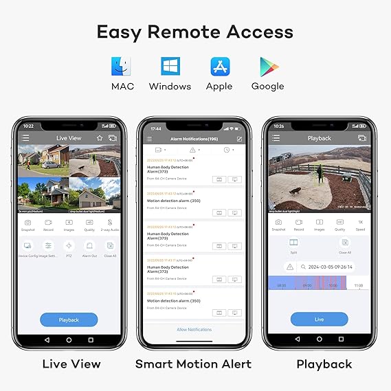 Remote Access | Mobile (iPhone/ Android); PC (Windows/ Mac) |
