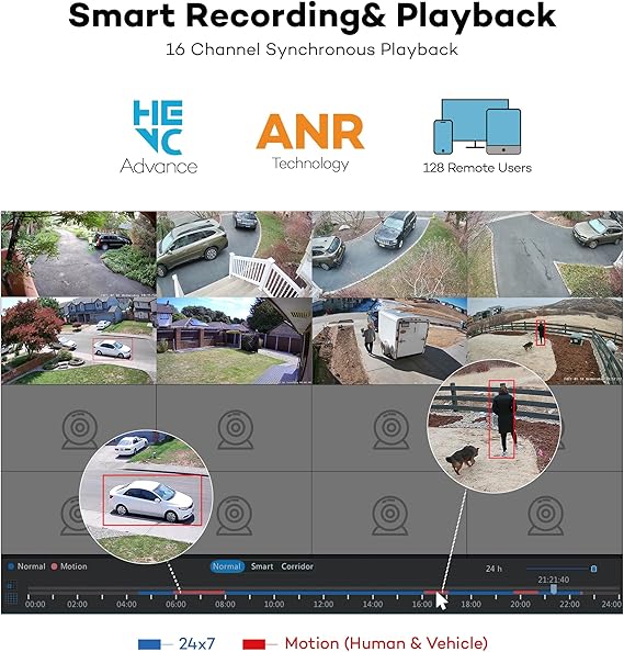 ONWOTE Wired 4K Security Camera System PoE 16 Channel, AI-Human-Vehicle-Detection, 8Pcs Outdoor Commercial 4K PoE IP Cameras Audio, 128° Wide View, 16CH 4K 8MP Business NVR 4TB, 16CH Synchro Playback