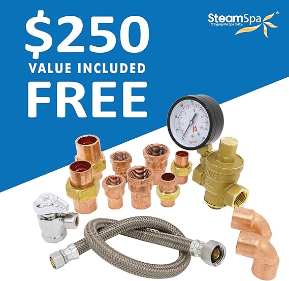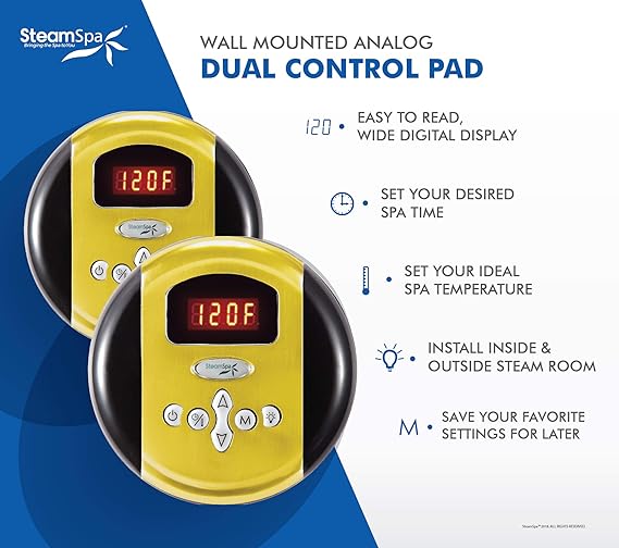 SteamSpa 9kW Steam Sauna Generator Executive Bundle 240V Steam Generator with Touch Pad, Steamheads, Pressure Relief Valve, Built-in Auto Drain, LED Light, Filter and Quick Install Kit EXR900GD-A