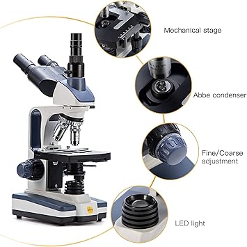 Swift SW350T Compound Trinocular Microscope,40X-2500X Magnification,Two-Layer Mechanical Stage,with 5.0 mp Camera and Software Windows/Mac Compatible and 5 PCS Prepared Slides and 5 PCS Blank Slides