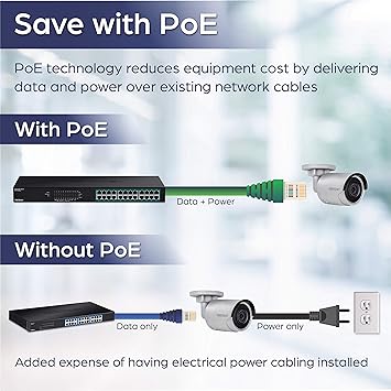 Installers and integrators can save on equipment costs and reduce installation time with TRENDnet's Unmanaged Gigabit PoE+ Switches by delivering up to 30W per port of PoE power and data over existing Ethernet cables. With PoE technology, users only need one set of cables to deliver both data and power. With this PoE+ managed switch, network PoE devices such as high-power wireless access points, PTZ and other advanced IP cameras, VoIP phone systems, IPTV decoders, access controls, and more.
