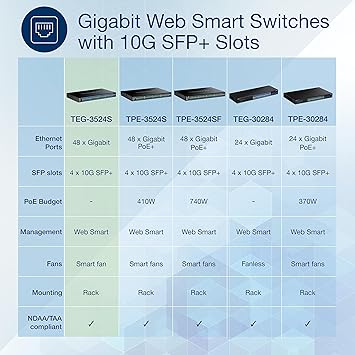 TRENDnet 52-Port Gigabit Web Smart Switch with 10G SFP+ Ports, TEG-3524S, 48 x Gigabit Ports, 4 x 10 SFP+ Ports, Network Ethernet Switch, Lifetime Protection, Black